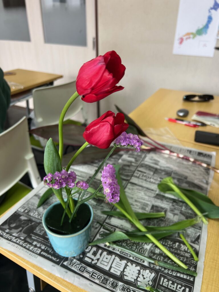 久しぶりの華道の授業では、春を感じる花々を生けました。