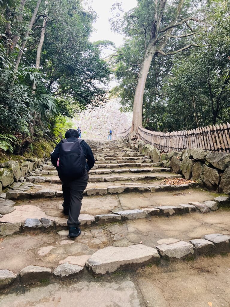 天守に向かう山道は坂と石段が続き、息が上がるほどでしたが、